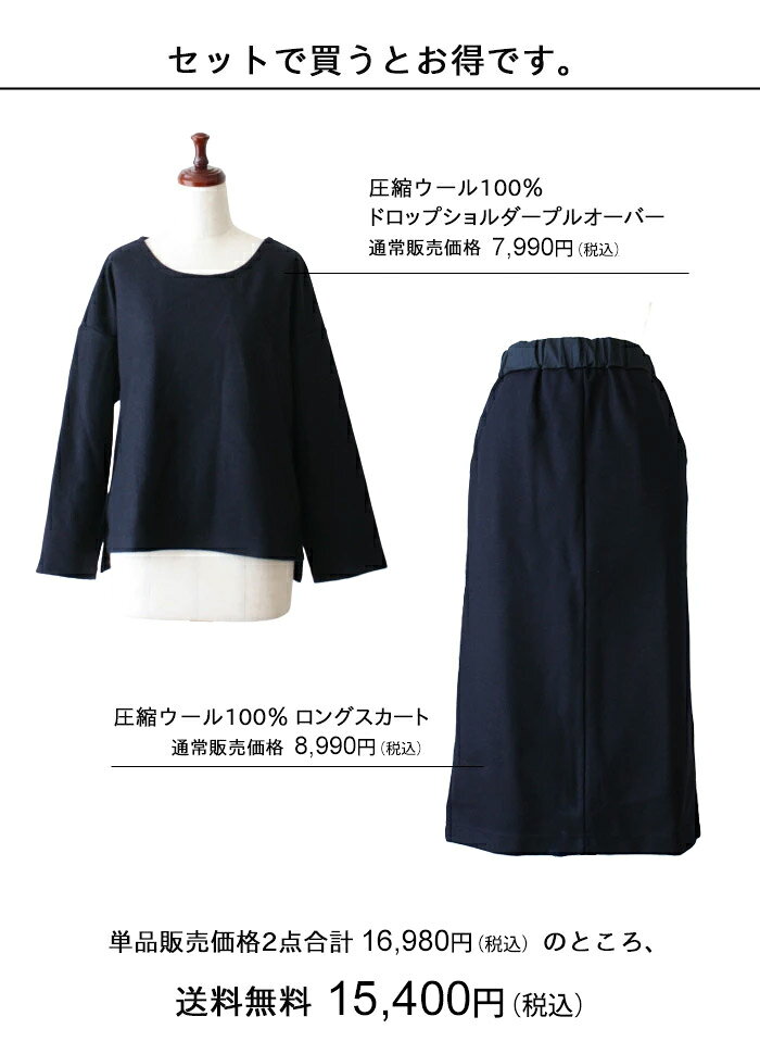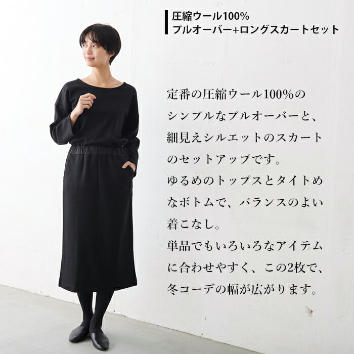 [セットアップ ニット スカート レディース 秋冬] 圧縮ウール100% ドロップショルダープルオーバー + ロングスカート sozai / 日本製 40代 50代 60代 30代女性 ファッション ウール100% 毛100 きれいめ 母の日ギフト