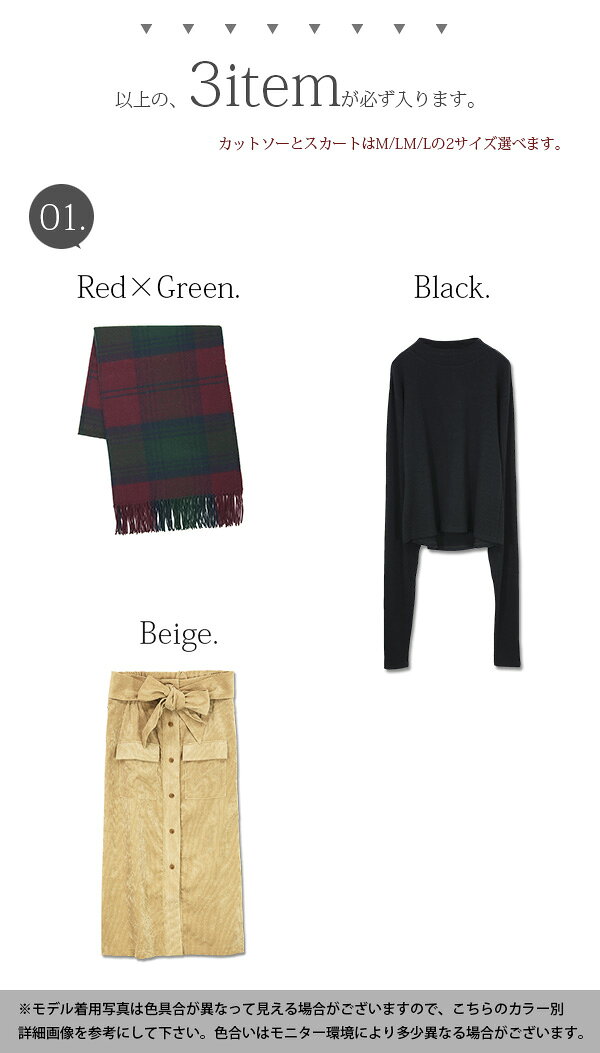 【送料無料】福袋 ほっこりあたたかなチェックストールが大人女子の冬を可愛く彩る★冬のオシャレ女子SET服袋【メール便不可】【M】【L】レディース カットソー リブ ロングスリーブ ストール チェック コーデュロイ スカート ロングスカート 可愛い SET
